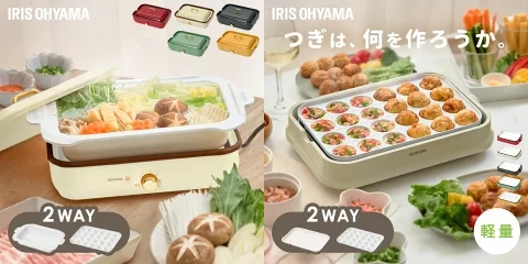 どちらのモデルも家庭用のコンパクトホットプレートで、「たこ焼きプレート」を標準装備しています。