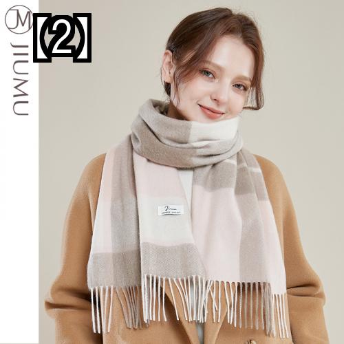 マフラー レディース 厚手 暖かい かわいい 韓国 ストール スカーフ おしゃれ 秋冬 エレガント 防寒 カジュアル チェック 青 ベージュ ピンク——— / 【1】ベージュ - カシ——— / 【2】ピンク キャメル- ——— / 【3】青 キャメル - 100——— / 【4】イエロー キャメル - 1