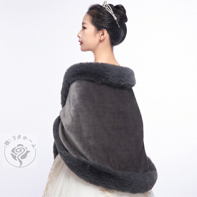 豪華肩掛け 大判ショール ファーストール 毛皮風ケープ 結婚式 ボレロ ポンチョ