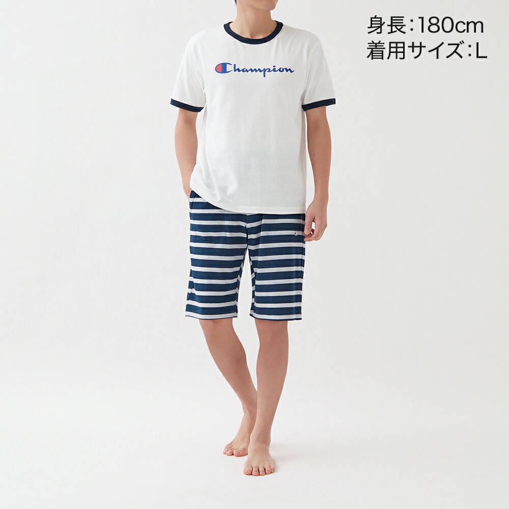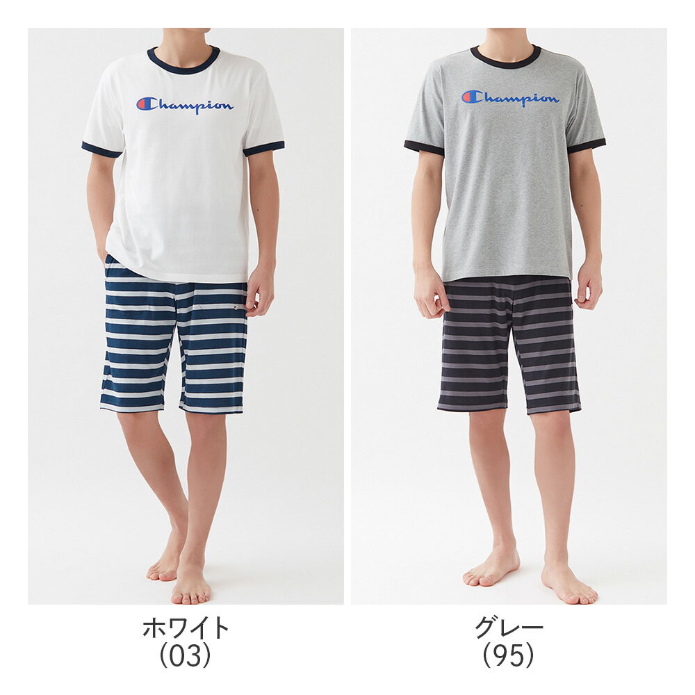■商品詳細 人気のオーセンティックアメリカンアスレティックウェアブランド【Champion】より、人気のビッグロゴプリントのトップスとオーソドックスなボーダー柄のボトムスを組み合わせたルームウエアの登場です。