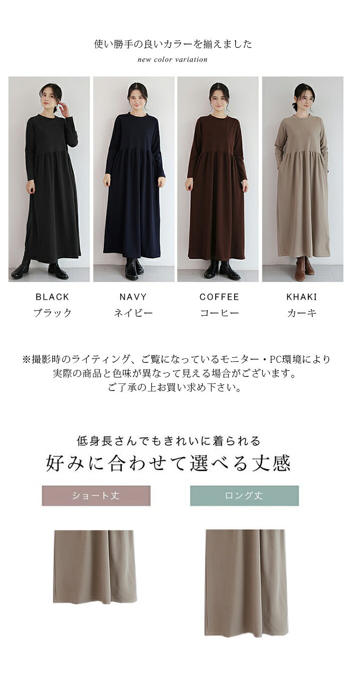 ロング ワンピース プリーツ レディース 2タイプ クールネック ロングワンピース 長袖 プリーツワンピース ウエスト 切り替え ドレス ミモレ丈 フレアワンピース ロング丈 体型カバー プリーツスカート ゆったり 楽チン 美脚 清楚感 大人 カジュアル Aライン 普段着 お出かけ