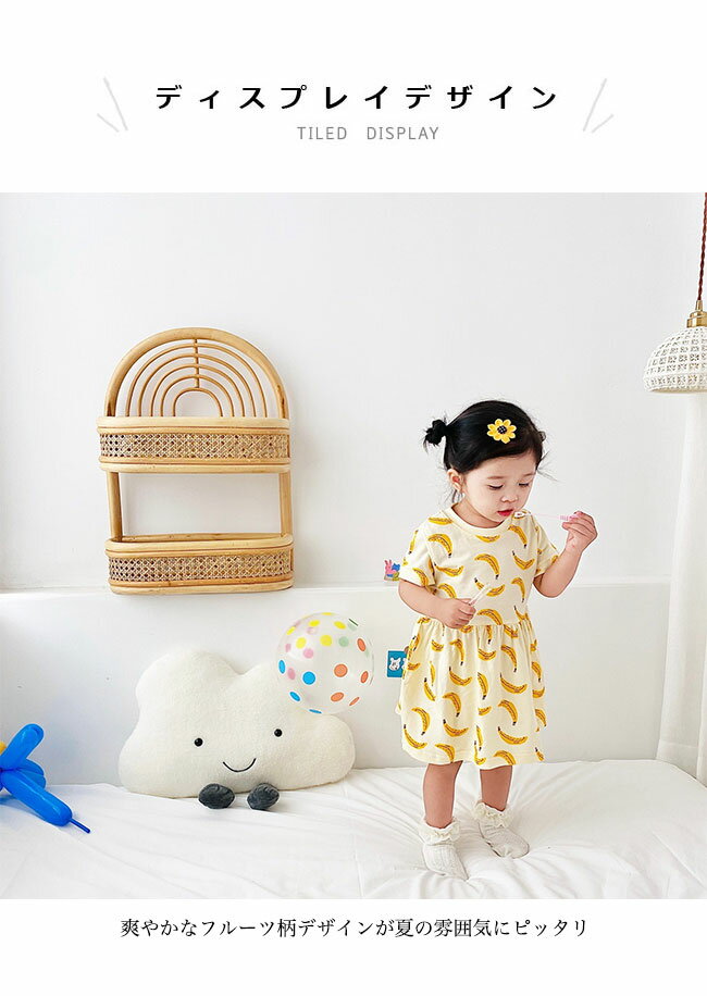 ■爽やかなフルーツ柄 サラサラの生地感 女の子用夏物半袖ワンピース 爽やかなフルーツ柄デザインが夏の雰囲気にピッタリ 女の子用、半袖サマーワンピースが新入荷 吸湿性・通気性に優れ、肌ざわりの良い綿混素材 Tシャツワンピに近いシンプル感で、腰部分のギャザー設計で甘さ倍増 シンプルでユニーク感も失わない、さりげなく周りと差を付けます この一枚で簡単にコーデ完成、手持ちのアイテムにも合わせやすい 流行に左右されず長く愛用でき、夏シーズンに必ず大活躍