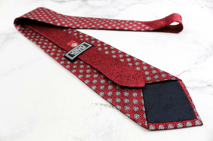 【4/20 11:00から 50%OFFクーポン】ヴェルサーチ ブランド ネクタイ シルク メドゥーサ柄 伊製生地 チェンジタイ メンズ レッド VERSACE 【中古】