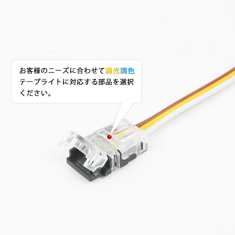 特徴 長さ:10m 適用3528調色調光延長コネクター 注意事項 電線の接続には必ずテープライトの「+」「-」と参照しながら正しく行ってください。