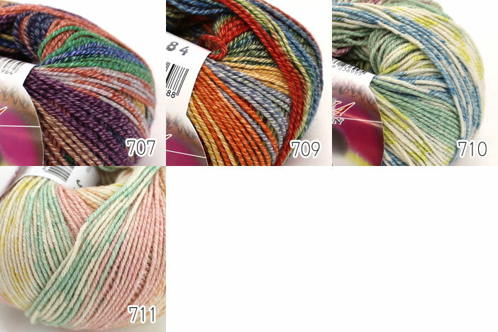 ナイフメーラは、コットンとウールが入っているオールシーズン使える合太の段染め糸。