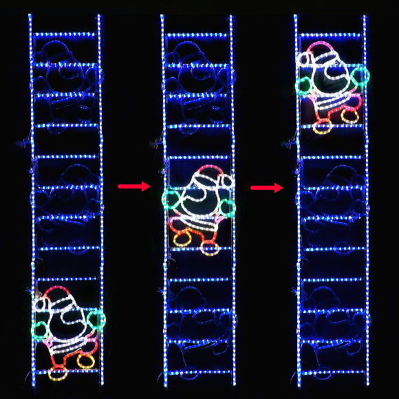 クリスマスを華やかに演出! LED TUBE LIGHT LADDER SANTA LEDチューブライト はしごサンタ 210cm チューブライトの可愛いはしごサンタ登場! 電源を入れると、はしごが光ると同時に サンタがはしごを上っているかのように光ります。