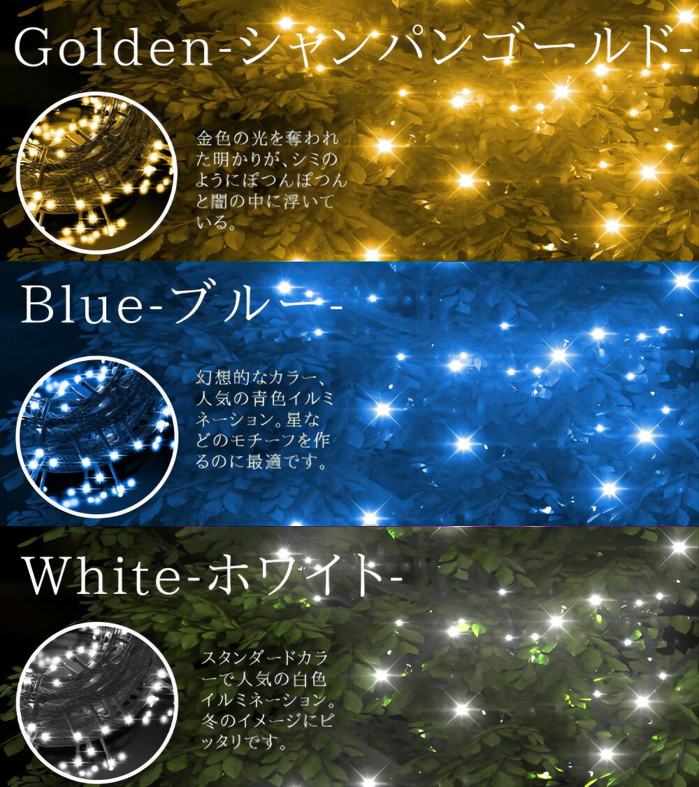 【色】 1.ブルー色(LED90個)が常点灯、ホワイト(LED10個)が点滅 2.ホワイト色(LED90個)が常点灯、ホワイト(LED10個)が点滅 3.シャンパンゴールド(金)色(LED90個)が常点灯、ホワイト(LED10個)が点滅 【PSE認証済】 日本の電気用品安全法(PSE)の技術基準に適合した安全性の高い商品です。