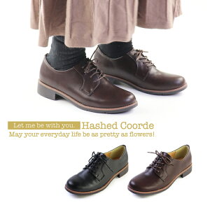 レザーシューズ ハッシュドコーデ Hashed Coorde レディース HC2906 ベーシック マニッシュシューズ 2010 レースアップ オックスフォード 革靴 おじ靴 ローカット スリッポン