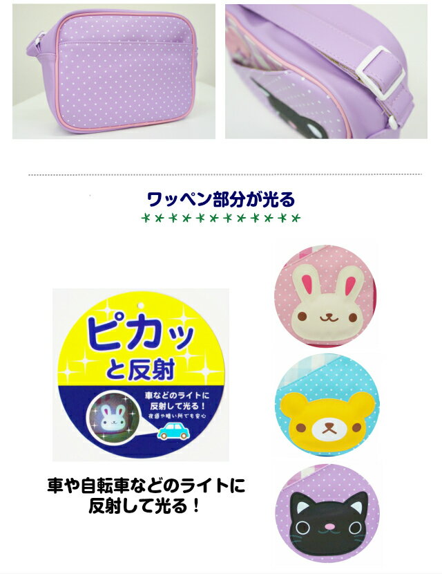 商品カテゴリ 通園バッグショルダー ショルダー女の子通園バッグ 通園バッグショルダー男の子 通園バッグショルダー女の子 通園バック 通園バックショルダー おしゃれ お洒落 おすすめ 人気 通販 可愛い かわいい animal アニマル 動物 熊 ベアー うさぎ 猫 クマ ネコ キャット 水玉 チェック ドット パステルカラー 桃色 水色 紫色 3才 4才 2才 リフレクター 反射 ブルー ピンク パープル ▲ご覧のページはこちらです ▲リュックタイプはこちらです ※記載しております、サイズ・重量は測定方法により若干異なる場合があります。