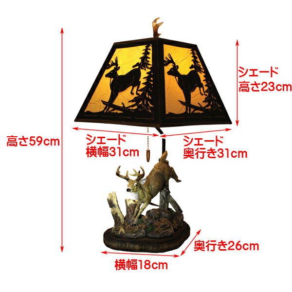 【商品詳細】 FROM USA! ディアー テーブル ランプ メタル シェード! 森の中を「鹿」が駆ける姿をモチーフにしたテーブルランプ! 飛ぶように駆ける鹿が、今にも動きだしそうに感じる、クオリティーの高い造形! 細かな彫刻と、丁寧な着色で、木の質感や、クマの毛並み感なども、見事に表現されています。
