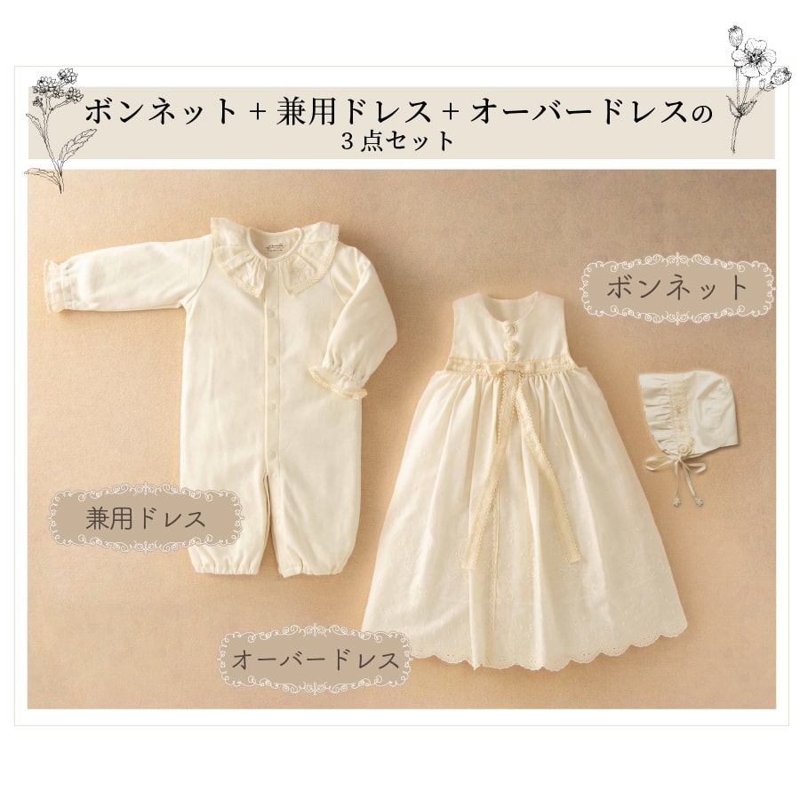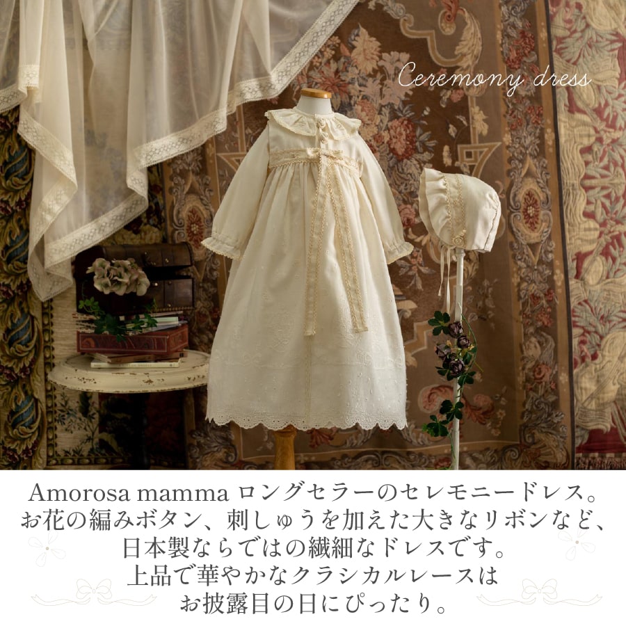 【公式 アモローサマンマ】 クラシカルレース セレモニードレス 3点セット 50-70 | オーガニックコットン 出産祝い お祝い ベビー服 男の子 女の子 日本製 赤ちゃん 服 新生児 お宮参り ベビーギフト 贈り物 ギフト 誕生日 ベビードレス 名入れ