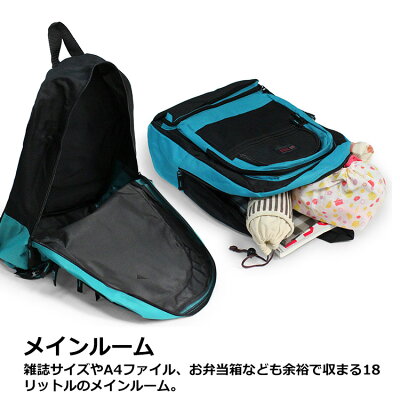 雑誌サイズやA4ファイル、お弁当箱なども余裕で収まる18リットル。