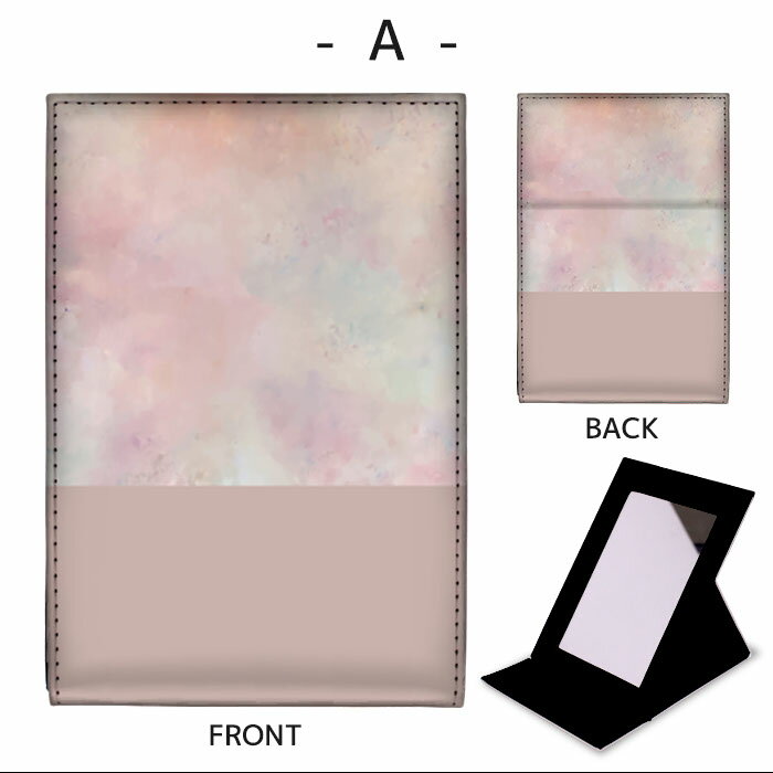 折りたたみ ミラー 卓上ミラー 鏡 メイク直し 手鏡 コンパクトミラー オリジナルデザイン 化粧鏡 お洒落 スタンドミラー 置き鏡 レザー トレンド 水彩風 にじみ 淡色