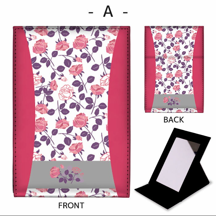 折りたたみ ミラー 卓上ミラー 鏡 メイク直し 手鏡 コンパクトミラー オリジナルデザイン 化粧鏡 お洒落 スタンドミラー 置き鏡 レザー 花柄