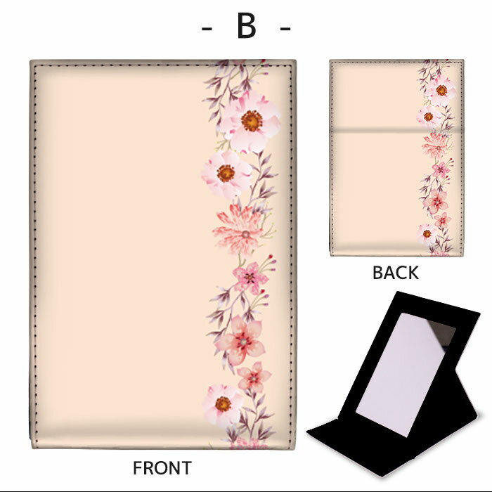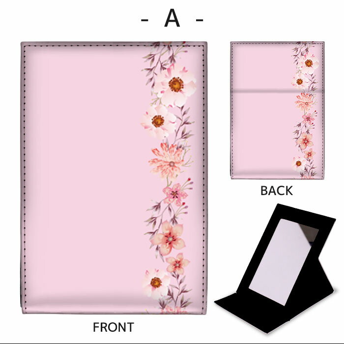 折りたたみ ミラー 卓上ミラー 鏡 メイク直し 手鏡 コンパクトミラー オリジナルデザイン 化粧鏡 お洒落 スタンドミラー 置き鏡 レザー 花柄 ピンク フラワーデザイン シンプル