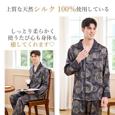 シルク100% パジャマ メンズ シルク シルクパジャマ 父の日 ギフト プレゼント 実用的 男性 長袖 長ズボン 40代 50代 60代 大きいサイズ 高級 4l 3l 絹 前開き ルームウエア 部屋着 おしゃれ 入院 寝間着 ナイトウエア 紳士用 パパ 父 祖父 おじいちゃん 誕生日 還暦祝い
