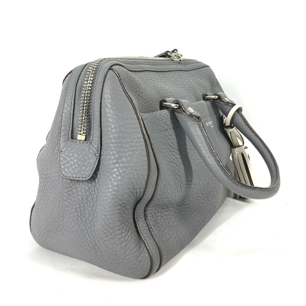 COACH コーチ 25347 ロゴ タッセル フリンジ カバン ミニボストンバッグ ハンドバッグ レザー レディース グレー 【中古】