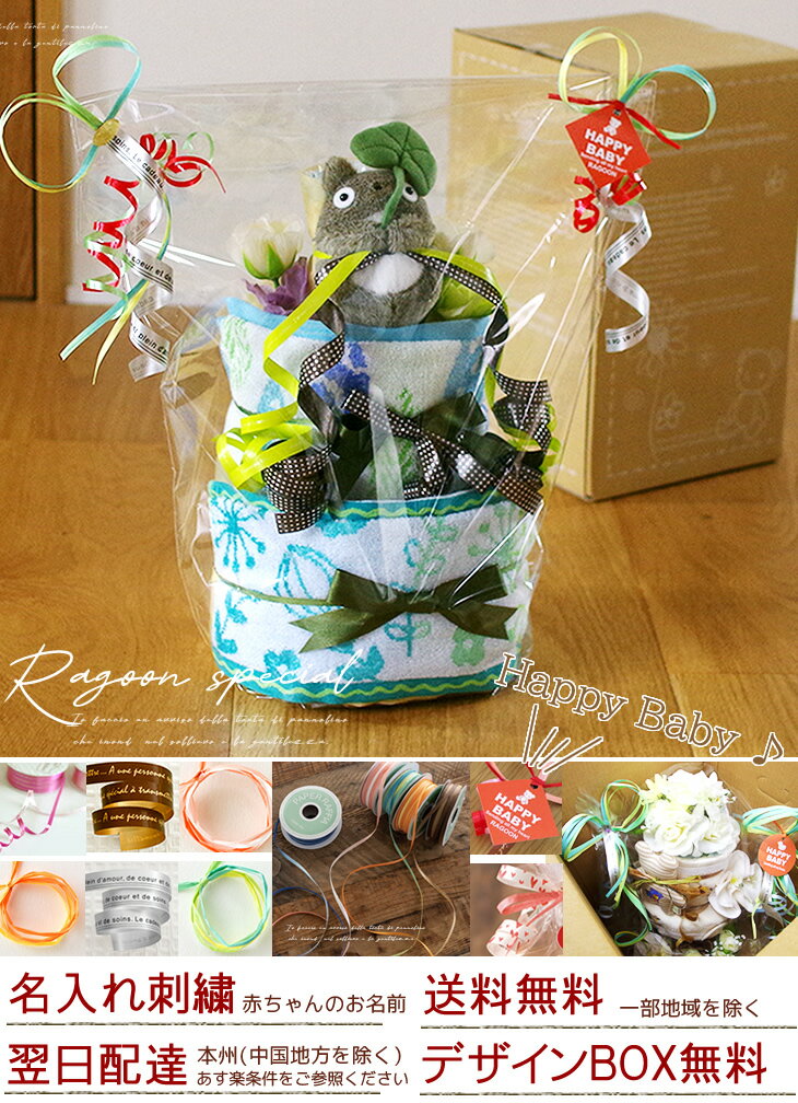 【セット内容詳細】 ●紙おむつ:パンパース18枚(備考欄でサイズ変更可) ●アートフラワー ●トトロ・マスコットorガラガラorポーチ ●ウォッシュタオル(1枚目):刺繍対応 ●ウォッシュタオル(2枚目):刺繍対応 ●オリジナルメッセージカード(無料サービス) ●デザインギフトボックス(全てのおむつケーキをギフトボックスで配達・無料サービス) ●オリジナルラッピング(全てのおむつケーキをプレゼント用にラッピングさせて頂いております・無料サービス) ●手渡し用手提げ袋(+400円) 【おむつについて】 ●パンパースについて(無料)● お祝ギフトだからこそ、特別なものを贈りたい、そんなお客様のお気持ちに応えて、ラグーン店のおむつケーキは全てパンパースでお作りしていますので、贈答品として安心です。