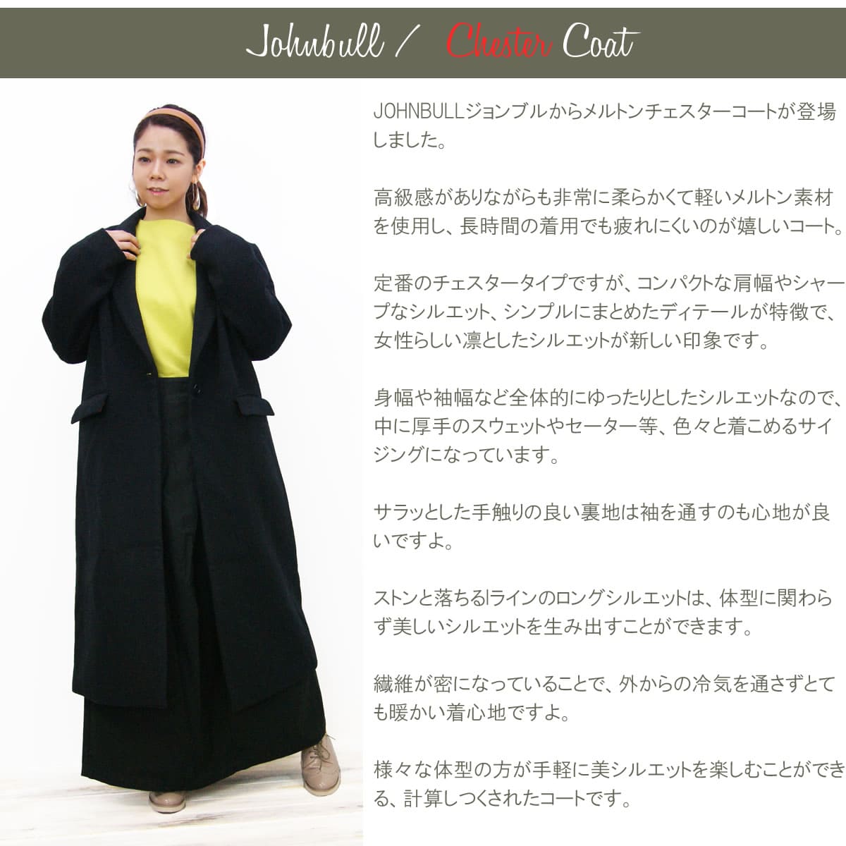 ■ johnbull ジョンブル 商品詳細 JOHNBULLジョンブルからメルトンチェスターコートが登場しました。
