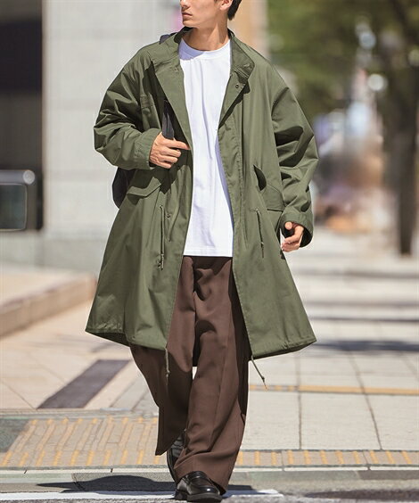 アウター はっ水 オーバーサイズ モッズコート M-10L 大きいサイズ メンズ ニッセン nissen | はっ水加工 ミリタリーコート オーバーサイズ仕様 フィッシュテール カジュアル