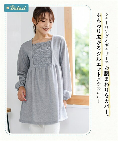 チュニック 大きいサイズ レディース お腹周りがスッキリ見える重ね着風シャーリング使い スモーキーネイビー/スモーキーピンク/黒/杢グレー L/LL/3L/4L/5L 体型カバー お尻隠れる ニッセン nissen
