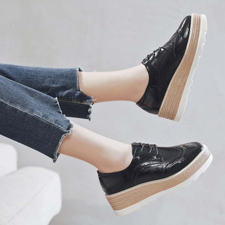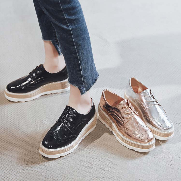 シューズ 靴 厚底スニーカー オックスフォードシューズ レディース 春夏 秋冬 裏起毛 ウェッジソール ヒール6cm レースアップ パンプス レディース ブラック ゴールド シルバー