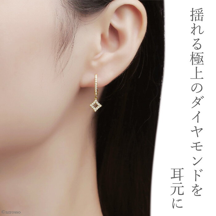 華奢なフープ型×ゆらゆら揺れるひし形モチーフのゴールドピアスは0.31カラット(0.31ct)。