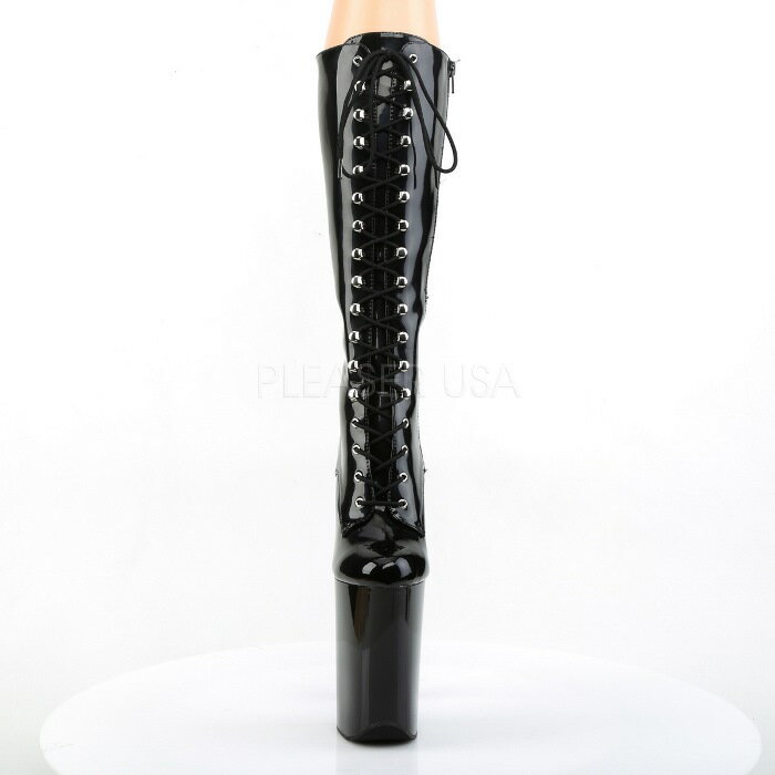 Pleaser プリーザー ロングブーツ 23cm ヒール ブーツ ハイヒール ピンヒール エナメル 黒 ブラック 厚底 超厚底 編み上げ レースアップ 大きいサイズ 靴 シューズ セクシー ポールダンス ダンサー ダンス コスプレ ステージ 衣装 INFINITY-2020 INF2020/B/M 取寄