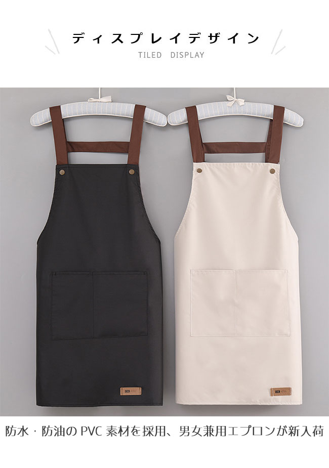 ■いろんなシチュエーションで活躍でき 男女兼用防水・防油エプロン 防水・防油のPVC素材を採用、男女兼用エプロンが新入荷 肩ベルトが落ちにくい設計を取り入れました 大きめのフロントポケットが付き、小物収納が出来るもの嬉しい 腰ひも入りなので、体型次第で締め付け感が調節可能 実用性とファッション性兼ね備え、シンプルでお洒落な北欧風デザイン 自宅用にも、カフェや旅館などのお店にもおすすめ 雰囲気の違う6色を用意、男性も女性も気軽に使えます