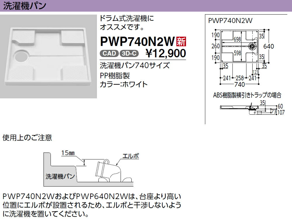 洗濯機パン740サイズPP樹脂製カラー:ホワイト排水口位置:センター台座高さ:47mm洗濯機設置有効寸法:W680mm×D580mm●【PWP740N2W】 洗濯機パン 740サイズ ●セット品番【PWSP74H2W】 洗濯機パン【PWP740N2W】+横引トラップ【PJ2008NW】 ●セット品番【PWSP74J2W】 洗濯機パン【PWP740N2W】+縦引トラップ【PJ2009NW】 ●セット品番【PWSP74JH2W】 洗濯機パン【PWP740N2W】+縦引トラップ【PJ2009NW】+ジャバラ排水ホース【PWH450】 ●セット品番【PWSP74F2W】 洗濯機パン【PWP740N2W】+横引トラップ【PJ001】 ●セット品番【PWSP74G2W】 洗濯機パン【PWP740N2W】+縦引トラップ【PJ002】 ●セット品番【PWSP74GH2W】 洗濯機パン【PWP740N2W】+縦引トラップ【PJ002】+ジャバラ排水ホース【PWH450】 ●セット品番【PWSP74D2W】 洗濯機パン【PWP740N2W】+横引トラップ【PJ2003B】 ●セット品番【PWSP74E2W】 洗濯機パン【PWP740N2W】+縦引トラップ【PJ2004B】ご不在時の商品配達のご連絡のため、電話番号はなるべく携帯電話の番号を入力してください。
