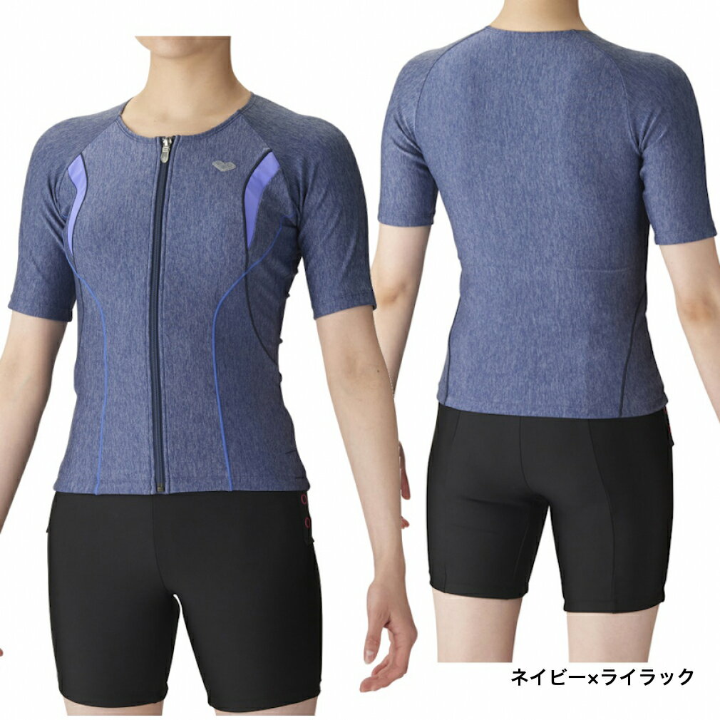 【すらっとセパ 大きめカラースナップ付き フルジップ 袖有りセパレーツ(差し込みフィットパッド) LAR-3242W】◇アクアビクスや水中ウォーキングをする方におすすめな「すらっとセパ」シリーズ◇ワコール社との協業によりリニューアルがされ、よりボディラインがすっきりキレイに見えるデザインになりました。