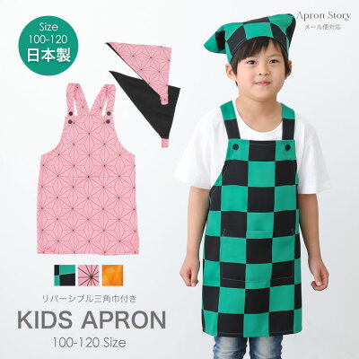 市松模様キッズエプロン リバーシブル三角巾セット 市松模様 麻の葉模様 うろこ模様 子供用 プレゼント 日本製 超軽量【メール便1枚のみ対応可能】【N】【Y】