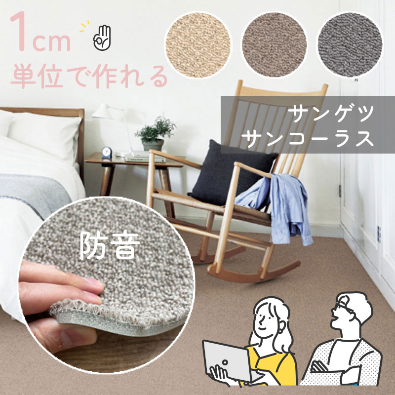 防音カーペット(サンゲツサンコーラス)の商品詳細 1cm単位でご希望サイズの防音カーペットを製作できます。
