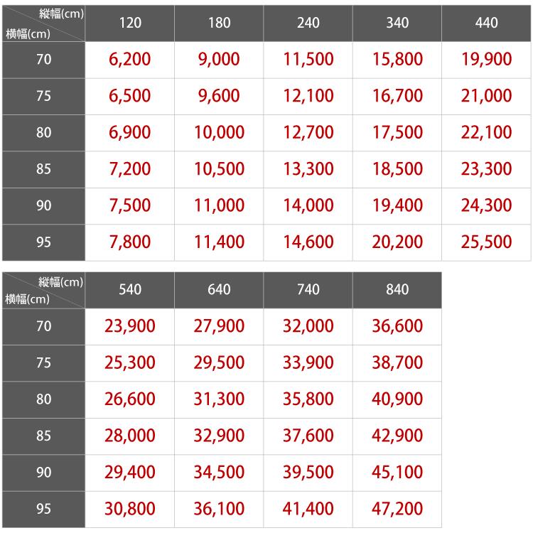 ■価格表(税込み価格) 幅 \ 長さ120180240340440540640740840 706,2009,00011,50015,80019,90023,90027,90032,00036,600 756,5009,60012,10016,70021,00025,30029,50033,90038,700 806,90010,00012,70017,50022,10026,60031,30035,80040,900 857,20010,50013,30018,50023,30028,00032,90037,60042,900 907,50011,00014,00019,40024,30029,40034,50039,50045,100 957,80011,40014,60020,20025,50030,80036,10041,40047,200 -廊下敷き オメガ- ご注文フォームへ -廊下敷き オメガ- ご注文フォームへ カラーラインナップ その他デザインラインナップ 丈夫で薄い廊下敷き「モケット織り」はこちら ※ガーネット/ローズ/ベージュ/ライトベージュ/サンド/ブラウン/ラベンダー/スカイ/ブルー/チョコ/ブラック/ネイビー/アイボリー/モスグリーン/ダークグレーは完売のため申し訳ございませんがサンプルのご用意ができません。