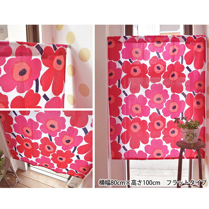 カフェカーテン マリメッコ 小窓 北欧 ピエニウニッコ レッド オーダー おしゃれ かわいい 花柄 pieni unikko ポール通し つっぱり棒 突っ張り棒 marimekko