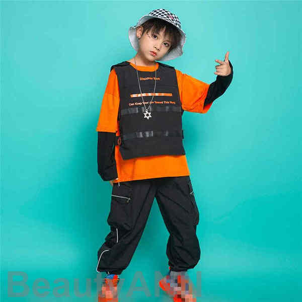 新生活 子供服 セットアップ ダンスウェア ステージ衣装 3点セット キッズ 長袖 tシャツ ロングパンツ ダンス衣装 ヒップホップ 派手 演出服 練習着 かっこいい hiphop グリーン オレンジ こどもの日 110 120 130