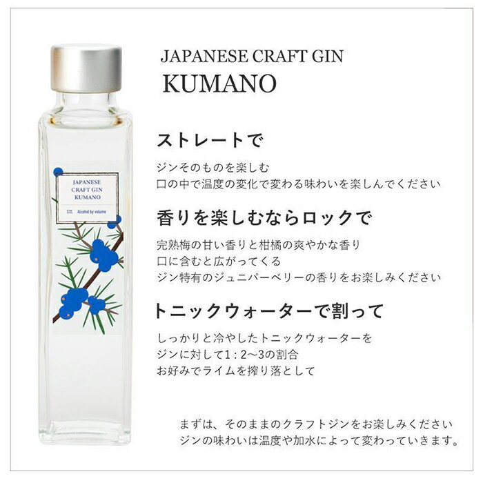 商品概要 2019年に新しくできた「紀州熊野蒸溜所ってどんなお酒を作っているの?」まず知って頂きたい、飲んで貰いたいという想いからできた紀州熊野蒸溜所3本セット 第1弾は、ジン梅酒 熊野、クラフトジン熊野、ブレンディッドモルトウイスキー熊野の3種類のセットです。