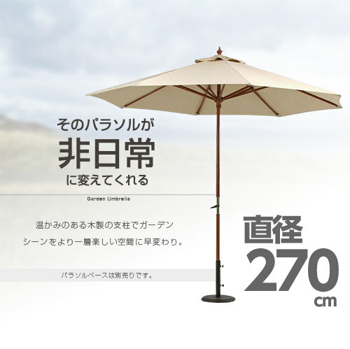 木製パラソル 270cm 木製 傘 アンブレラ 日よけ 270cm ブラウン 茶 塩系 カフェ風 北欧 フレンチカントリー アンティークテイスト アジアン モノトーン ミッドセンチュリー サーフ ブルックリン ボタニカル ケース 一人 おしゃれ オシャレ モダン デザイン シンプル 人気
