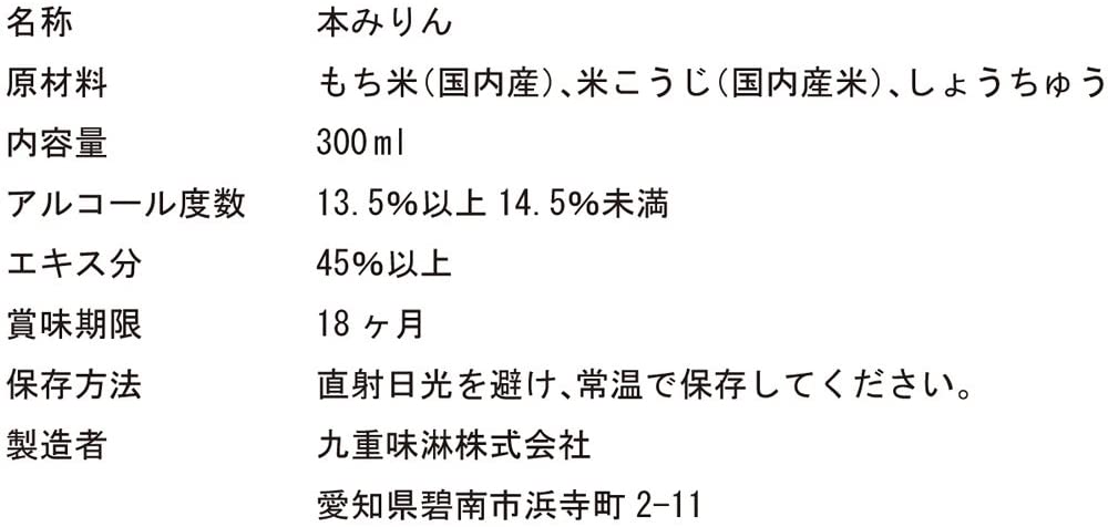 1回のご注文で12本まで 三河みりん 送料12本まで1本分 ギフト プレゼント クリスマス 父の日 家飲み ヤマト運輸にて 元祖九重櫻 300ml 瓶 1本 箱なし 三河みりん 九重みりん