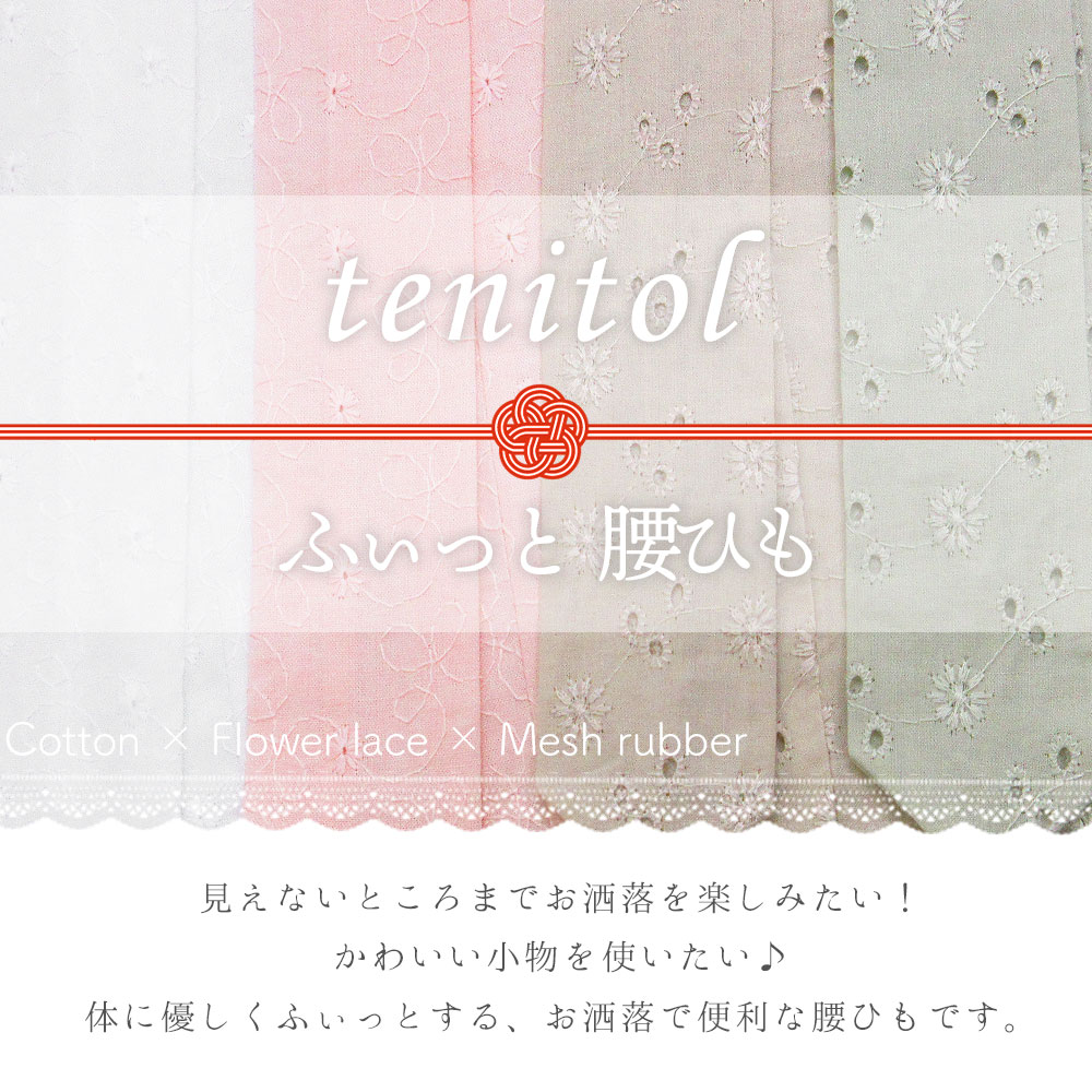 ふぃっと腰ひも こしひも 腰紐 綿100% メッシュ ゴム 約210cm tenitol レース 花柄 伸縮性 通気性 白 ベージュ ピンク 緑 和装小物 着付け小物 レディース 女性 着物 成人式 振袖 留袖 袴 浴衣 長襦袢