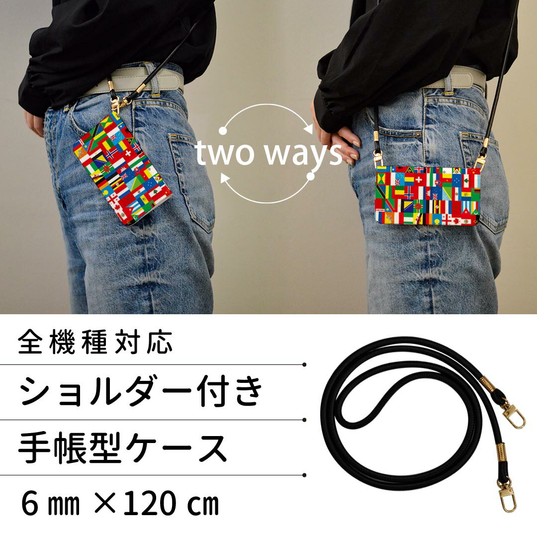 iPhone14 6.1インチ 専用 各キャリア iPhone 14 共通対応 ストラップ付き iphone14 ケース ショルダー スマホ 落下防止 手帳型 マグネット式 ピタッと閉まる スマホカバー 肩掛け 斜めかけ 007360 カラフル 国旗 模様