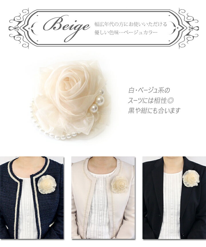 【定形外郵便OK220円】コサージュ/上品エレガントパールふんわりオーガンジー薔薇ローズ花コサージュクリップc50/白ベージュ紺ピンク 髪飾り 結婚式 フォーマルコサージュ ュブローチ 入学式 卒業式 セレモニー ケース【あす楽対象】