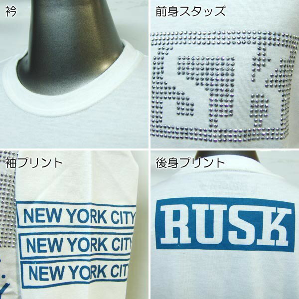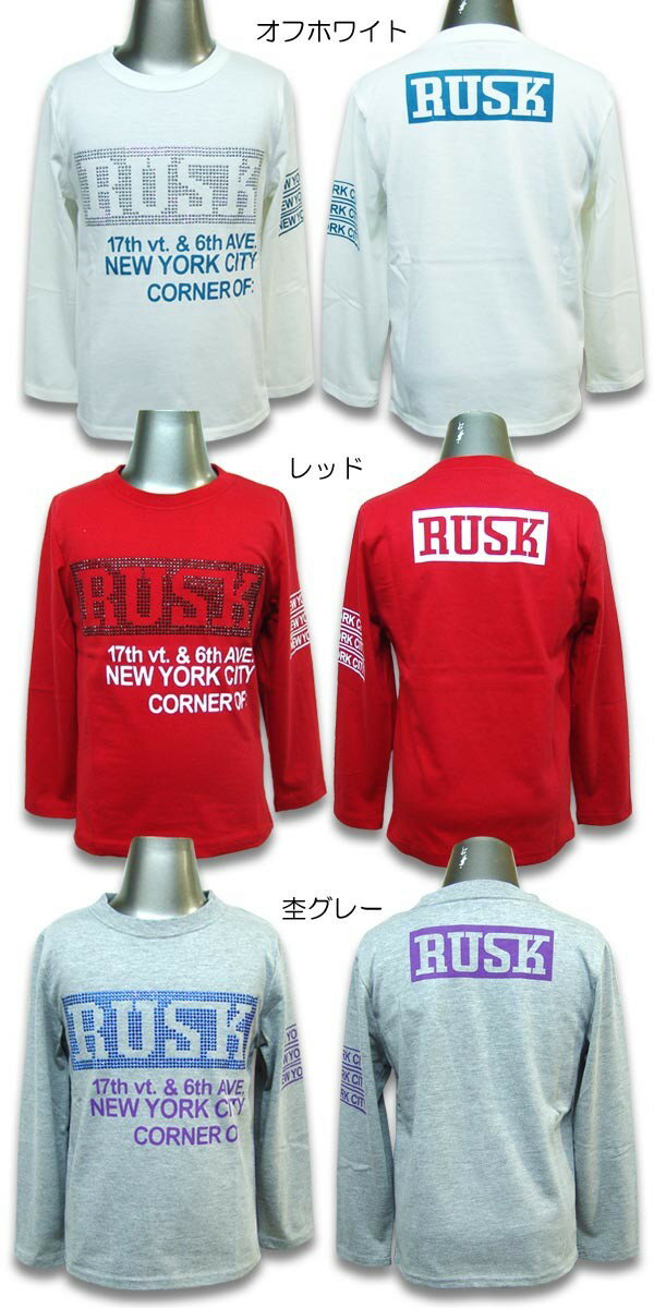 【399円均一】キッズ 子供服 ベビー服 ロンT ラインストーン 男の子 ボーイズ 女の子 ガールズ アメカジ 100cm 110cm 120cm 130cm 140cm 150cm 160cm RUSK ラスク「3541-04」