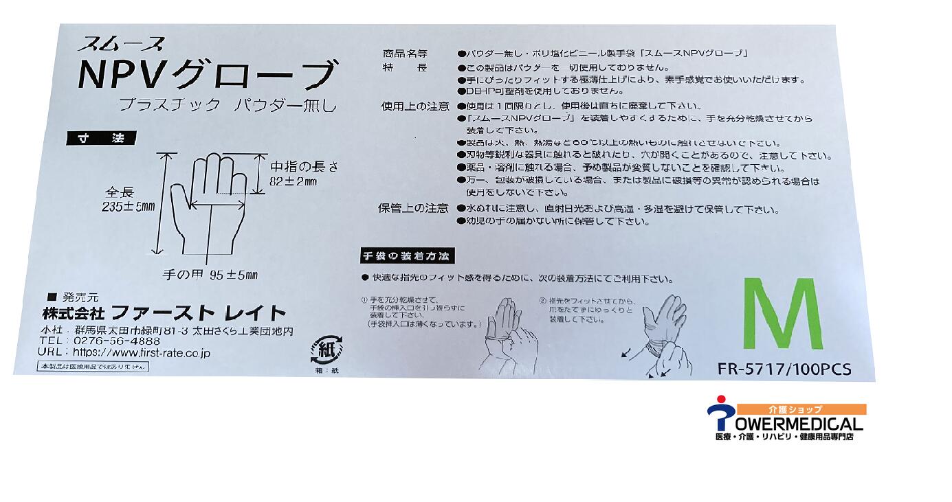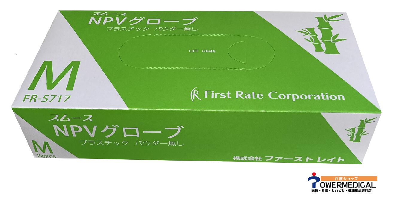 【ケース販売/1箱 ¥440 (税込み)x10箱】ファーストレイト FR-5717 スムースNPV プラスチックグローブ (粉なし)PF 竹 (Mサイズ) 100枚入り 10箱