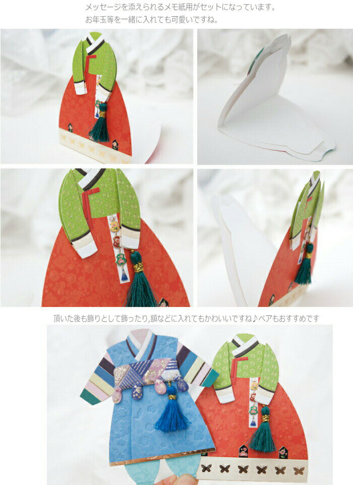 おめでたい日に着る韓服をモチーフに封筒がセットになっています。