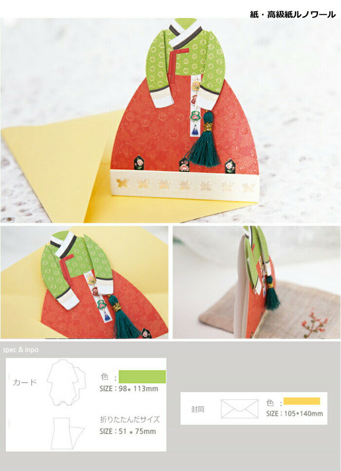 子供のお祝い袋 お年玉ポチ袋にかわいいチマチョゴリ 韓国 メッセージカード (韓服 )チマチョゴリ4 日ごろの感謝を込めたかわいい立体メッセージカードです。