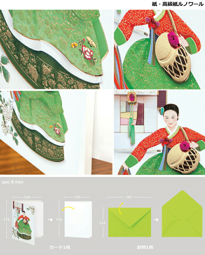 ハングル気分で気持ちを伝えたい時に 韓国 メッセージカード (韓服 )チマチョゴリ舞踊 日ごろの感謝を込めたメッセージカード グリーティングカードです。