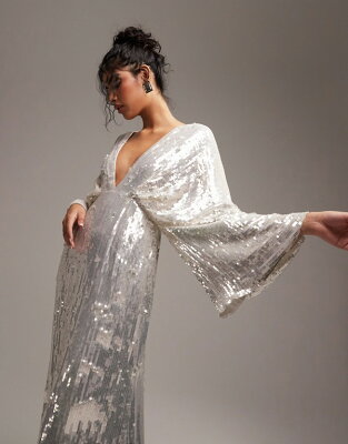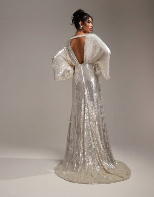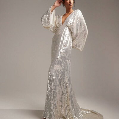 エイソス ASOS asos ASOS DESIGN ハリエット スパンコール プランジ キモノスリーブ ウェディングドレス アイボリー ワンピース レディース 女性 インポートブランド 小さいサイズから大きいサイズまで