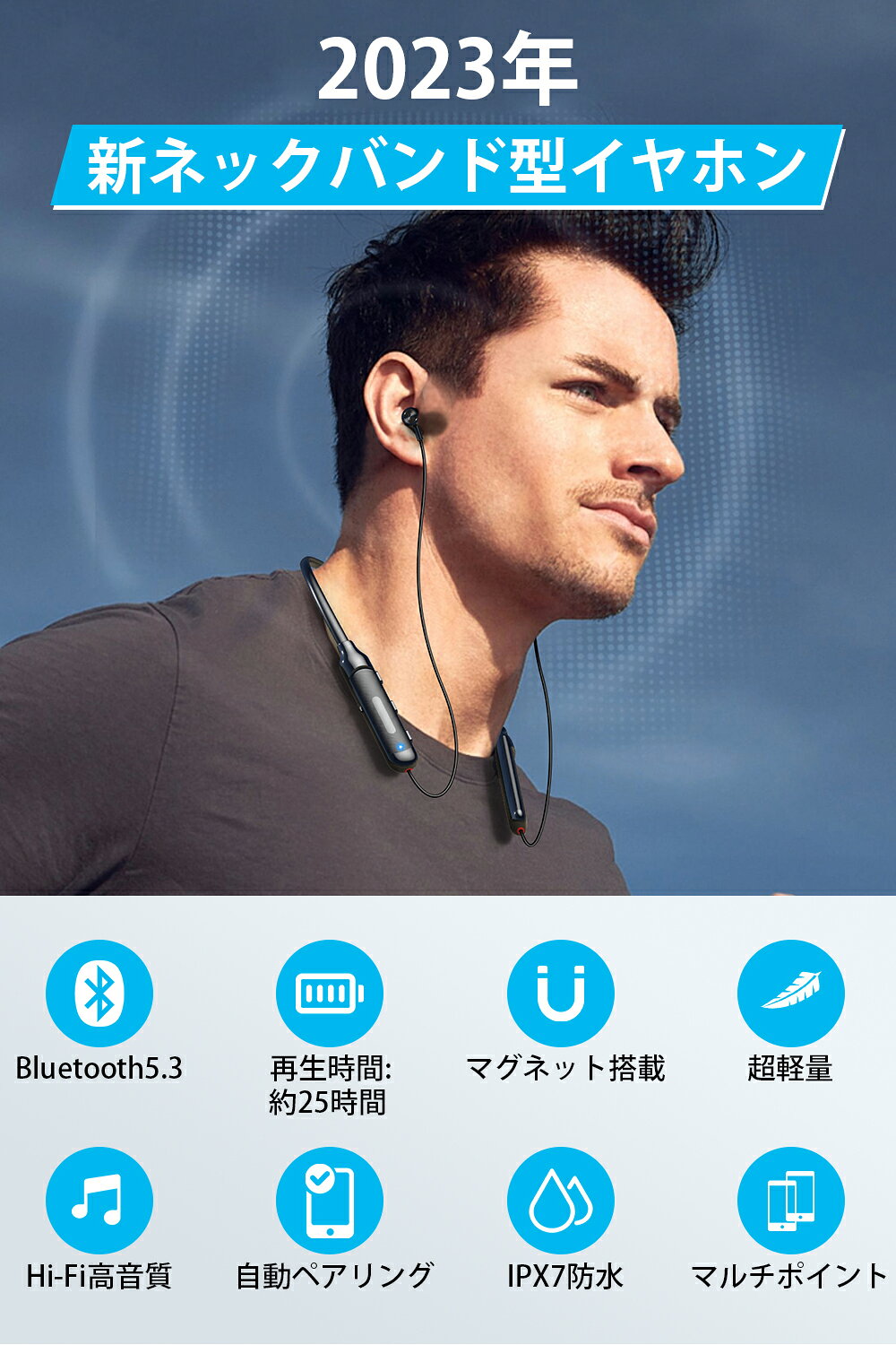 \10%OFFクーポン&P5倍で1,942円/2024 次世代ネックバンド型 イヤホンイヤホン Bluetooth5.3 Bluetooth 首掛け イヤホン ネックバンド ワイヤレスイヤホン 首掛け イヤホン スポーツ防水 IPX7 ブルートゥース マグネット搭載 重低音ノイズキャンセリング 超快適運動