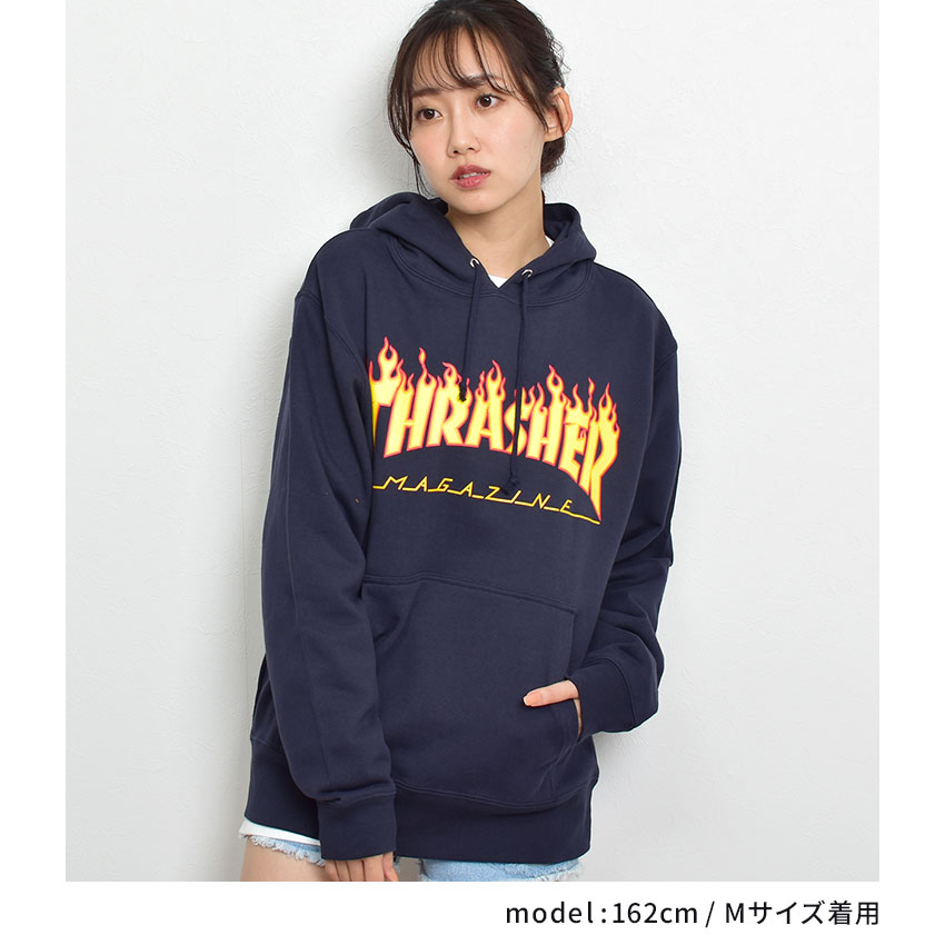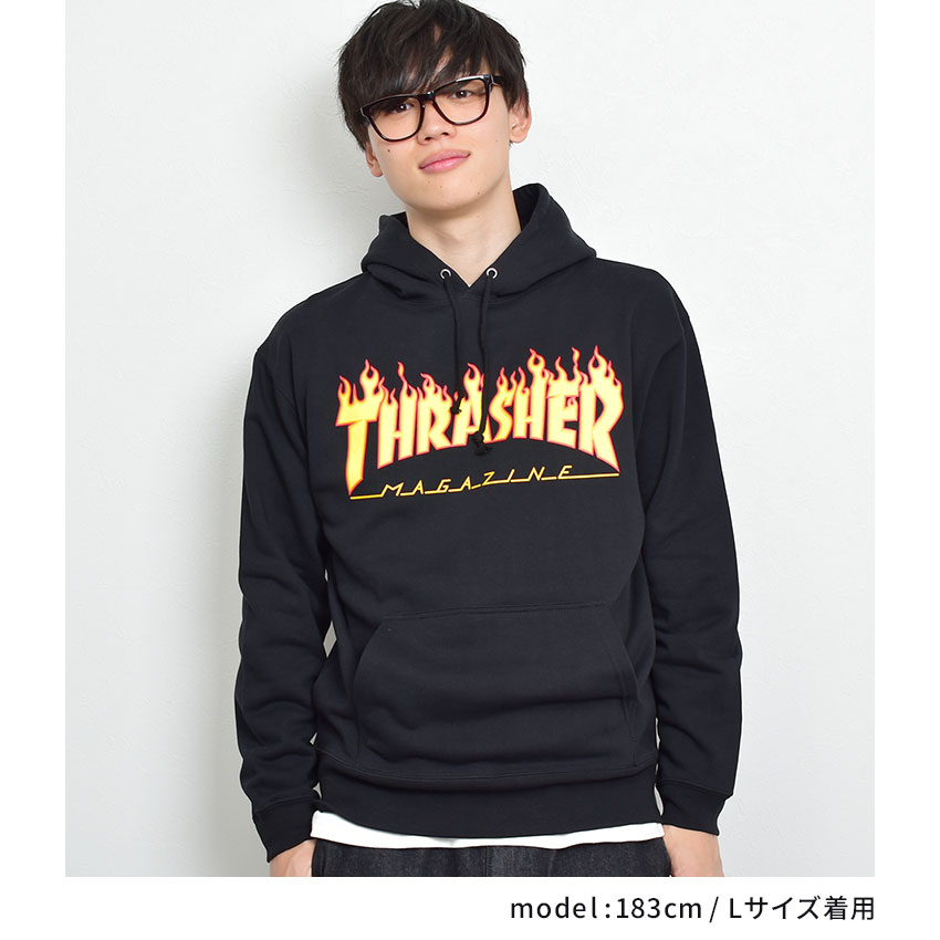 【店内全品★P5倍!】スラッシャー パーカー メンズ レディース 裏毛 フーディ オーバーサイズ ゆったり THRASHER FLAME フード スウェット プルオーバー TH95130PL ロゴ ストリート スケボー ブランド カジュアル トップス 長袖 プリント ポケット